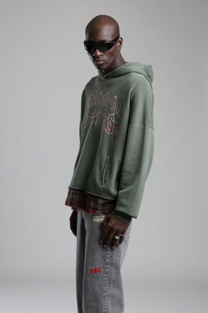 Hanorac casual cu glugă, aspect vintage și tăieturi stilizate. Ideal pentru tineri care iubesc streetwear-ul autentic.