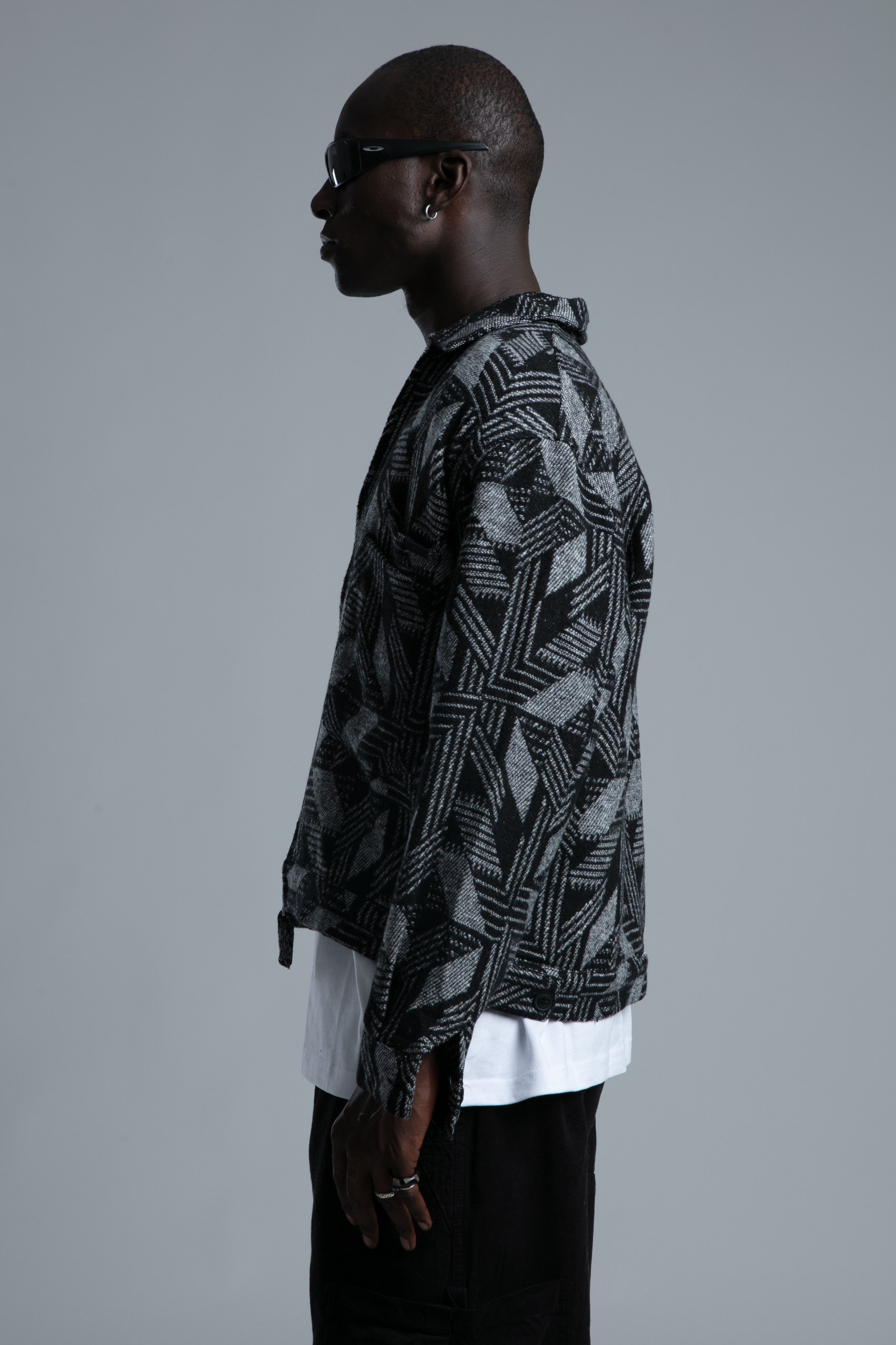 Această geacă modernă adaugă un plus de stil oricărei ținute urbane. Cu un imprimeu geometric distinctiv în nuanțe de alb și negru, geaca se potrivește perfect atât cu tricouri simple, cât și cu ținute casual. Croiala sa lejeră și materialul confortabil oferă libertate de mișcare și un look relaxat, dar elegant.